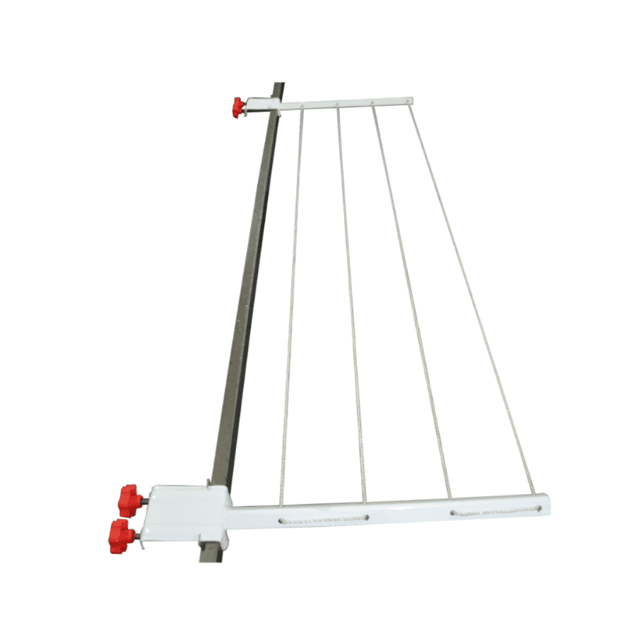 - Αποτελούμενη από δύο βραχίονες που διαθέτουν τέσσερις θέσεις για ισάριθμες σειρές απλώματος, μπορεί να εφαρμόσει στις περισσότερες τετράγωνες κουπαστές (έως 9 εκατοστά) χάρη στις ρυθμιζόμενες βίδες στήριξης.