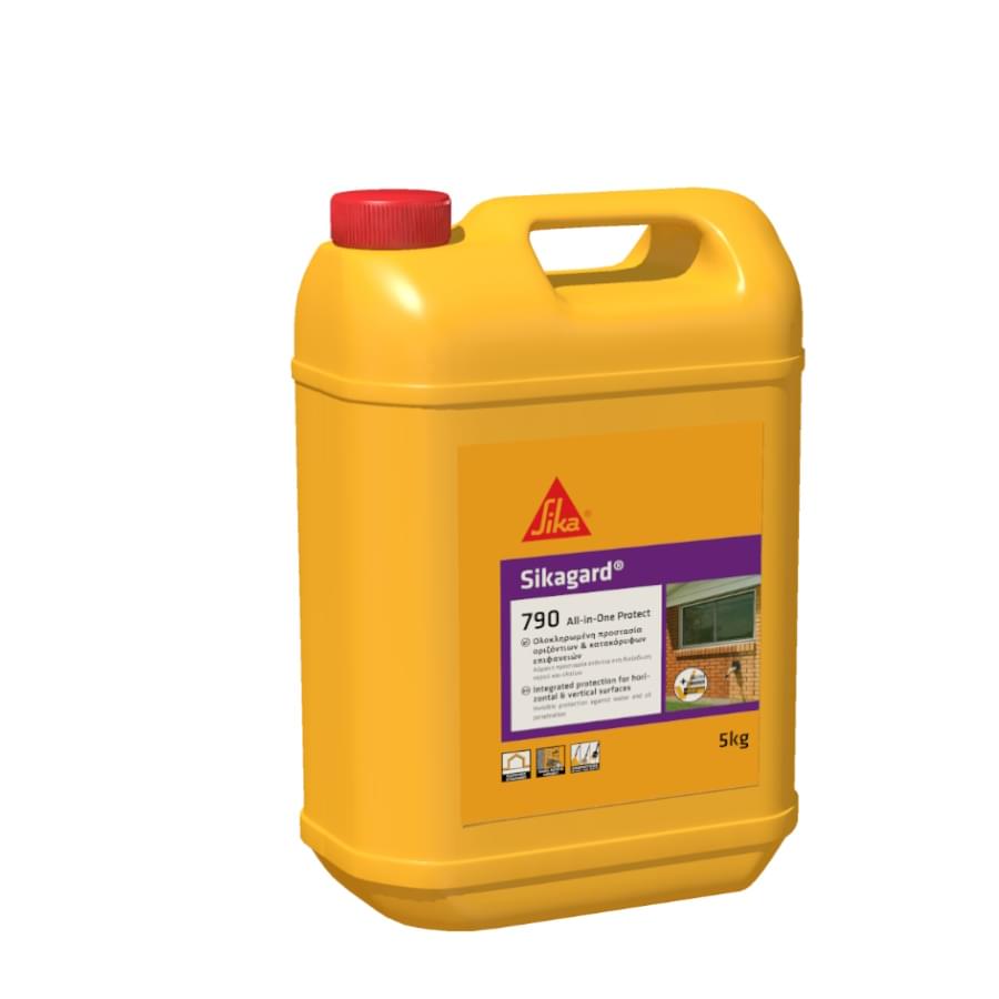 Το Sikagard®-790 All-in-One Protect αποτελεί προστατευτικό εμποτισμό που έχει σχεδιαστεί για προστασία πορωδών ορυκτών υποστρωμάτων ΟΛΩΝ των τύπων από τη διείσδυση υδατικής βάσης υγρών και ελαίων και για αποτροπή ή τη σημαντική μείωση των λεκέδων που προκαλούν αυτά. Το Sikagard®-790 All-in-One Protect δε δημιουργεί φιλμ στην επιφάνεια και συνεπώς είναι εντελώς αόρατο. Το Sikagard®-790 All-in-One Protect επιτρέπει τη διάχυση υδρατμών και προς τις δύο διευθύνσεις και ως αποτέλεσμα οι επεξεργασμένες επιφάνειες διατηρούν τη συνήθη, υγιή, υγροθερμική τους συμπεριφορά. Το Sikagard®-790 All-in-One Protect επίσης καθιστά ευκολότερη την απομάκρυνση graffiti που θα ψεκαστεί στην επιφάνεια (με χρήση κατάλληλων καθαριστικών).